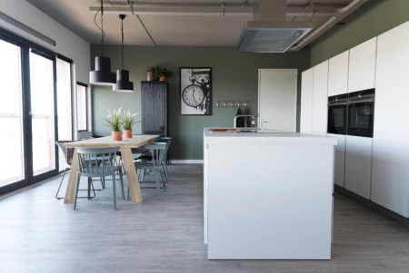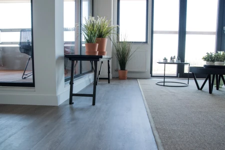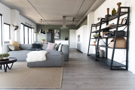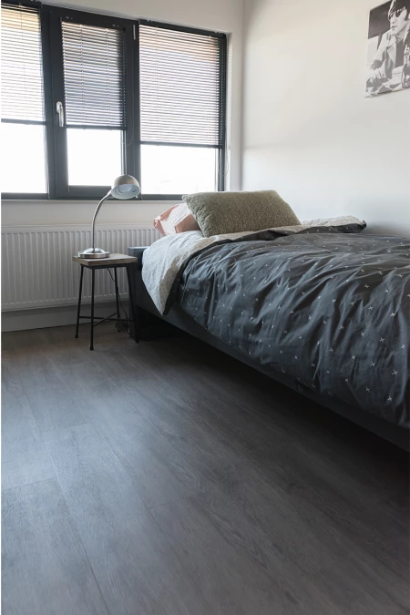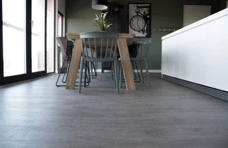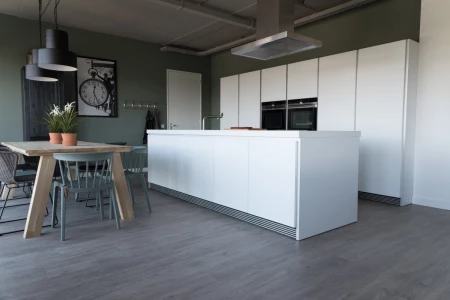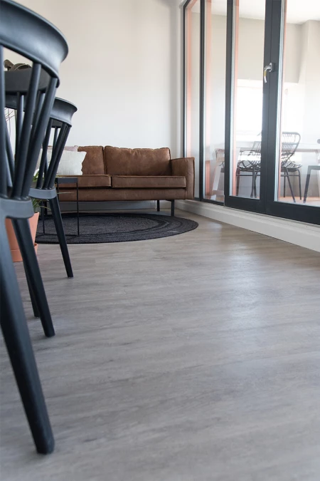 Saviez-vous que vous pouvez poser du Parquetvinyl dans n’importe quelle pièce ? Ces habitants l’ont bien compris ! Du Parquetvinyl a été posé dans toutes les pièces de cet appartement neuf, jusqu’à la plus petite ! Cela permet de créer un bel ensemble. Les sols en vinyle gris sont parfaitement adaptés à cet appartement neuf de type scandinave.