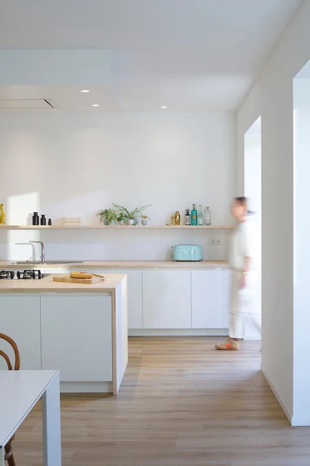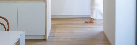 Parquetvinyl in je keuken? Topidee! Deze vloer mag je reinigen met water en zeep, dus je hoeft echt niet bang te zijn om te morsen. Hij is gemaakt voor kleine drama's en grote feestjes! Iets laten vallen? Geen probleem! In dit project kozen ze voor de vinyl vloer Yukon Beach omwille van de heel naturelle uitstraling. Perfect als je op zoek bent naar een echte houtlook.